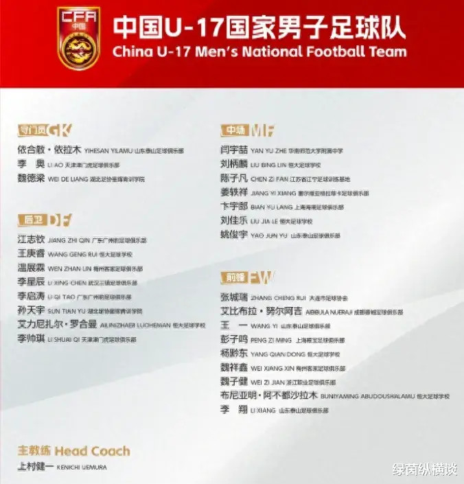 备战U17亚洲杯! U17国足名单: 艾比布拉领衔, 恒大足校6人入选